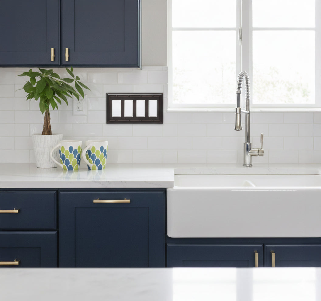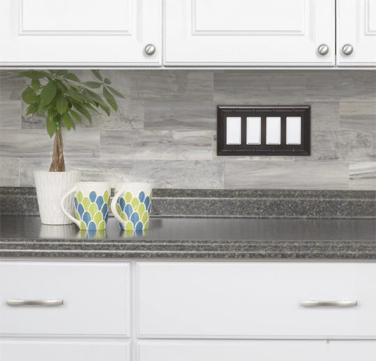 Upgrade your space with this 4-gang rocker switch wall plate, designed to bring a refined and elegant touch to your walls. Featuring a classic aged bronze finish, it adds warmth and character while complementing traditional, rustic, and modern interiors.