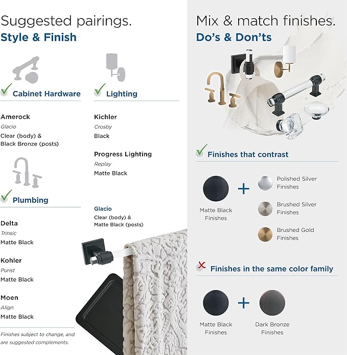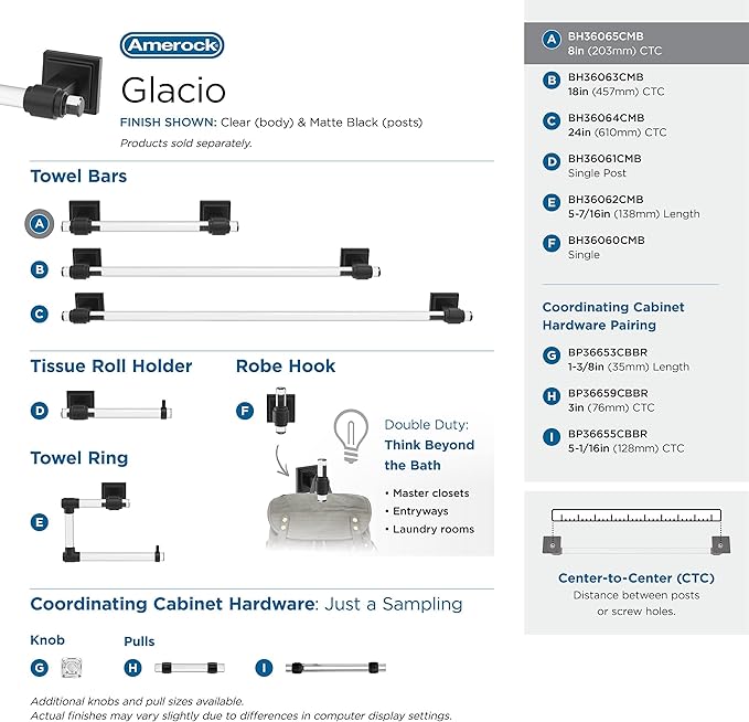Amerock BH36065CMB | Clear/Matte Black Towel Bar | 8 in. (203 mm) Towel Rack | Glacio | Bathroom Towel Holder | Bathroom Hardware | Bath Accessories