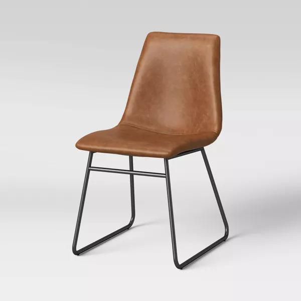 Bowden Faux Leather Dining Chair Caramel - Threshold Mid Century, Foam-Padded, Steel Legs