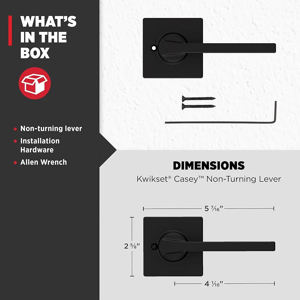 This interior dummy door lever handle is designed for doors that do not require a latch or locking mechanism, such as closets, pantries, and French double doors. Featuring a single-sided, non-turning push/pull design, it functions as a decorative handle to open and close doors. The matte black finish delivers a modern, minimalist look that complements a wide range of interior styles. Its reversible design allows installation on both left- and right-handed doors and installs easily using standard tools.