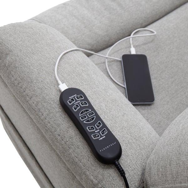 The Flexsteel Zecliner Model 1 is a premium power recliner designed with both comfort and health in mind. Featuring Zero-Gravity technology, it helps reduce pressure on the spine and improve circulation. Upholstered in high-performance fabric with a modern silhouette, this recliner includes a power headrest, adjustable lumbar support, and a lay-flat feature for personalized relaxation. Integrated USB charging ports make it convenient for everyday use.