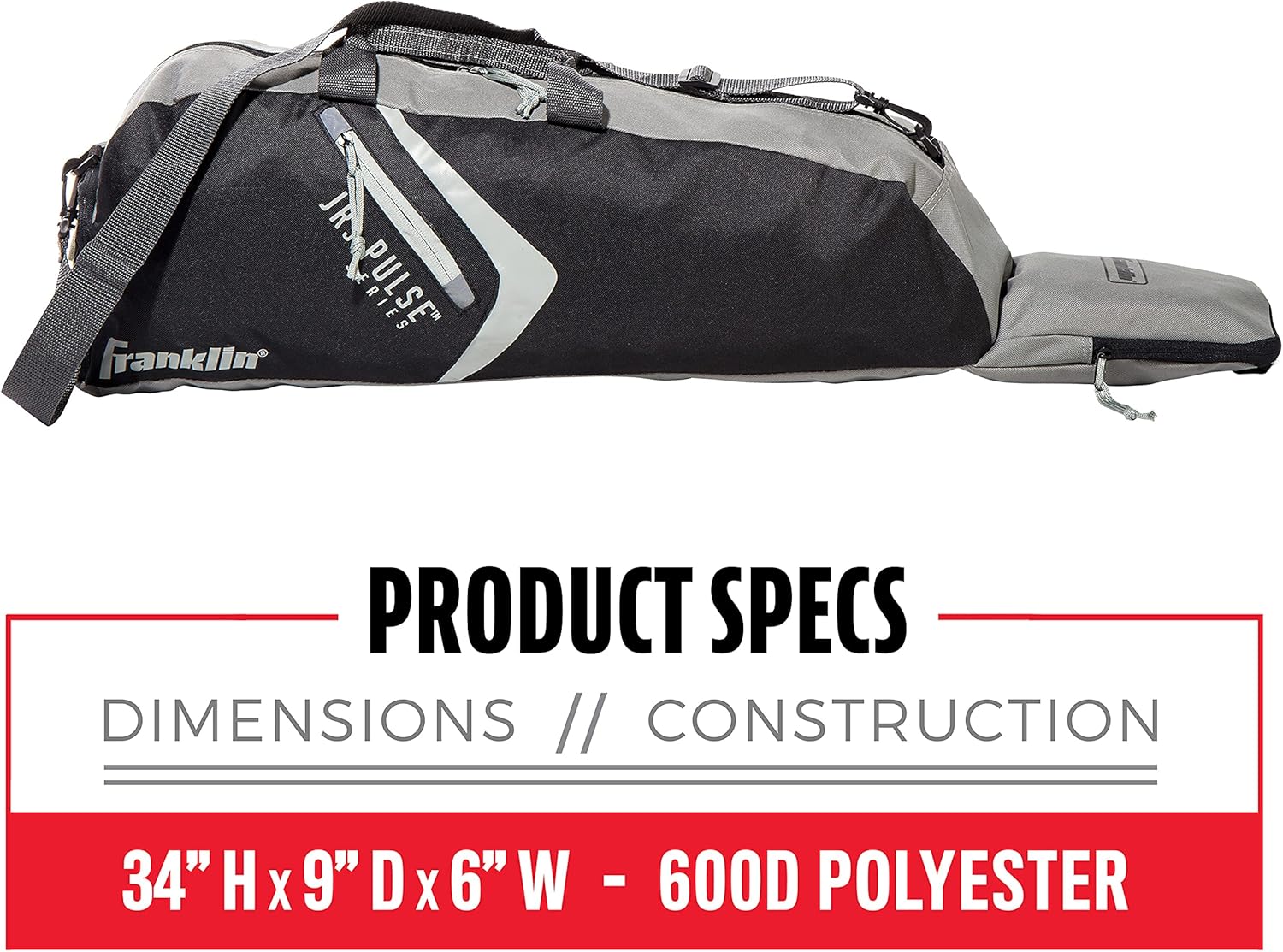 Franklin Sports Youth Baseball Bag - JR3 Junior Kids Bat Bag for Teeball, Baseball & Softball - Boys & Girls Equipment - Black/Gray