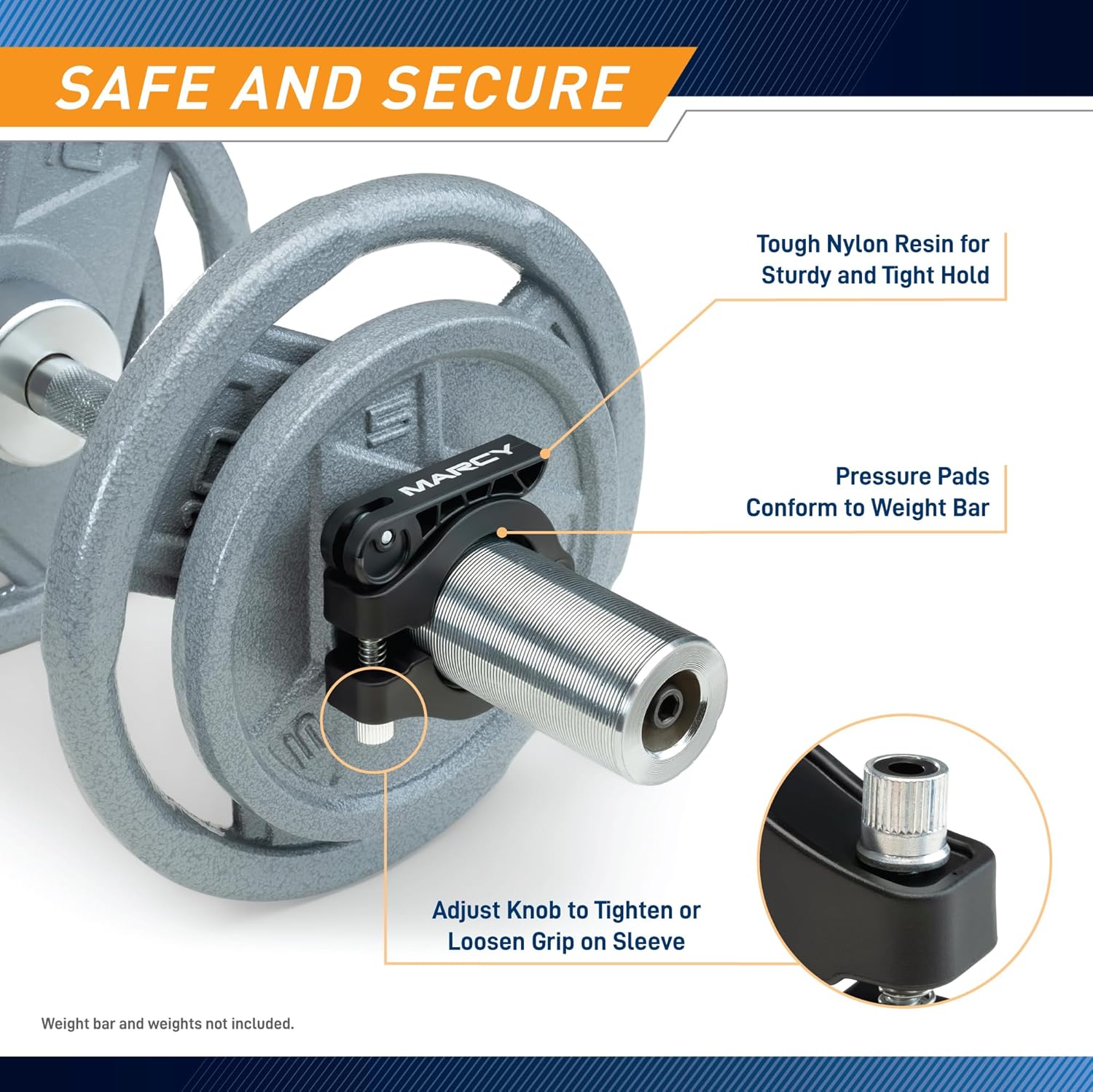 Keep Your Plates Secure: Marcy Olympic Barbell Lock Collar Clips hold your weights firmly in place, ensuring they don’t shift or fall during heavy lifting sessions.