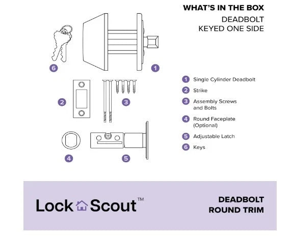 This single-cylinder deadbolt lock features a durable matte black finish with a clean round trim design, providing reliable security for residential entry doors. Keyed on one side with a thumb turn on the interior, it offers convenient operation while maintaining safety and privacy. Designed to fit standard door preparations, this deadbolt is suitable for both new installations and replacement projects.