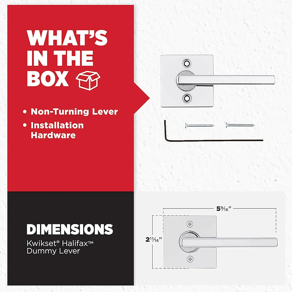 This polished chrome dummy door lever handle is designed for interior doors that do not require a latch or locking mechanism, such as closets, pantries, and French double doors. Featuring a single-sided, non-turning lever with a modern square rose, it functions as a push/pull handle while adding a clean, contemporary look to interior spaces. The reversible design allows installation on left- or right-handed doors.