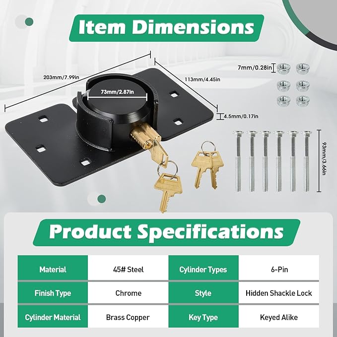 Applications: Suitable for securing trailers, trucks, garages, sheds, gates, and warehouses