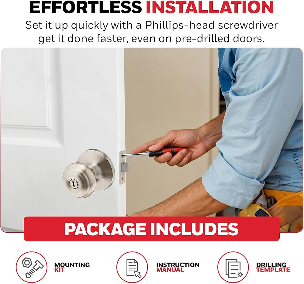 Satin Nickel Interior Door Knob with Lock & Key – Bedroom and Privacy Door Handle