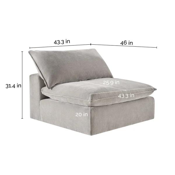 The Sereen Armless Chair combines minimalist design with comfort. Upholstered in soft, durable fabric, it provides a versatile seating option suitable for living rooms, bedrooms, or offices. Its armless design allows for flexible placement and easy pairing with other furniture, making it both functional and stylish.