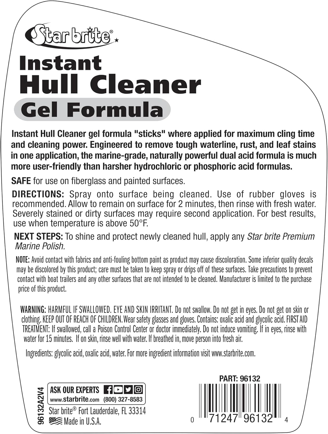 STAR BRITE Instant Hull Cleaner - 32 Oz Gel Spray - Easily Remove Stains, Scum Lines & Grime on Boat Hulls, Fiberglass, Plastic & Painted Surfaces (096132)