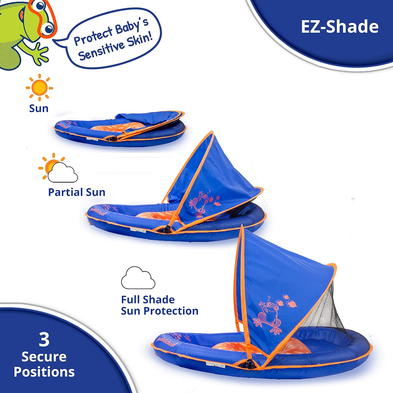 SwimSchool Deluxe Baby Float with Adjustable Canopy - 6-24 Months - Baby Swim Float with Splash & Play Activity Center Safety Seat - Blue/Orange