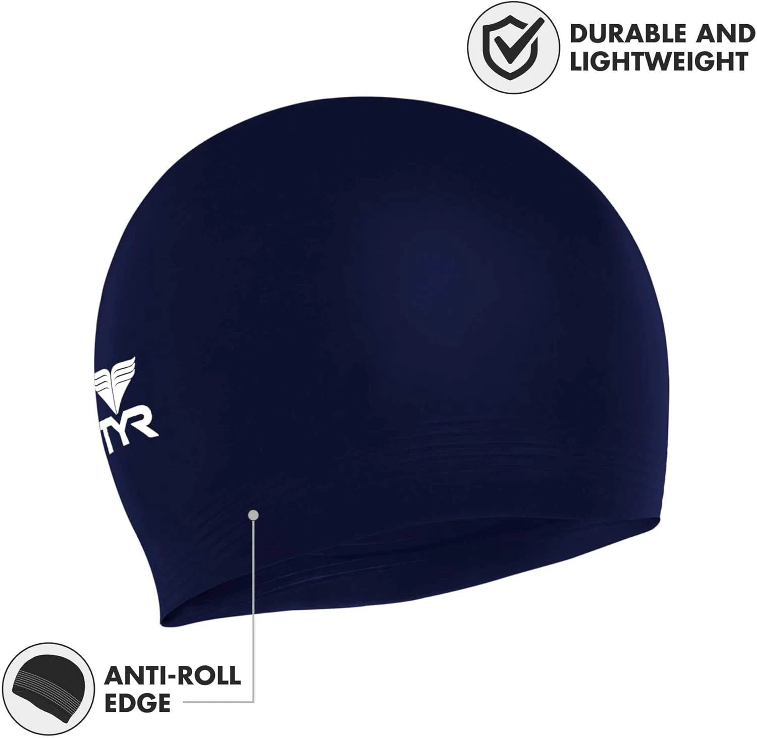 The TYR Unisex Adult All-season Swim Cap is designed for swimmers of all genders and suitable for use throughout the year. Made from high-quality materials, this swim cap offers excellent comfort and durability, ensuring a secure fit during your swim sessions. The stylish navy color adds a sleek look while providing protection from sun and moisture. Perfect for pool and open water swimmers alike, it helps reduce water resistance to enhance your performance.