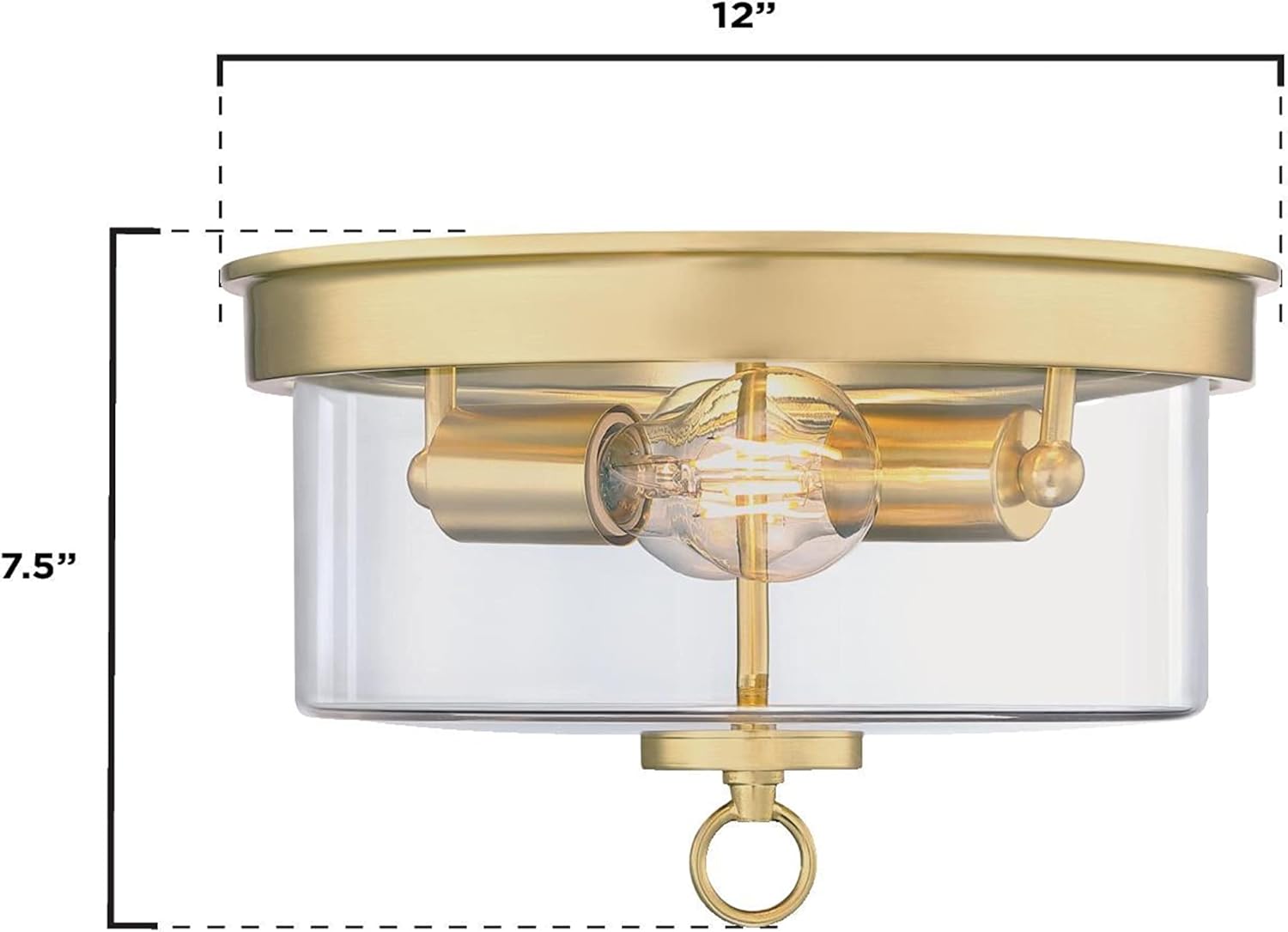 Westinghouse 6128600 Lebanon Transitional 12 Inch, Two Light Flush Mount Ceiling Fixture, Champagne Brass Finish, Clear Glass