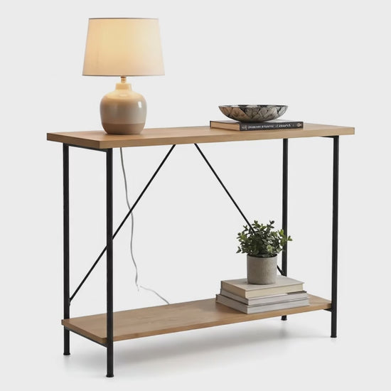 Wood and Metal Console Table Natural – Room Essentials Entryway Sofa Table, Slim Modern Industrial Design