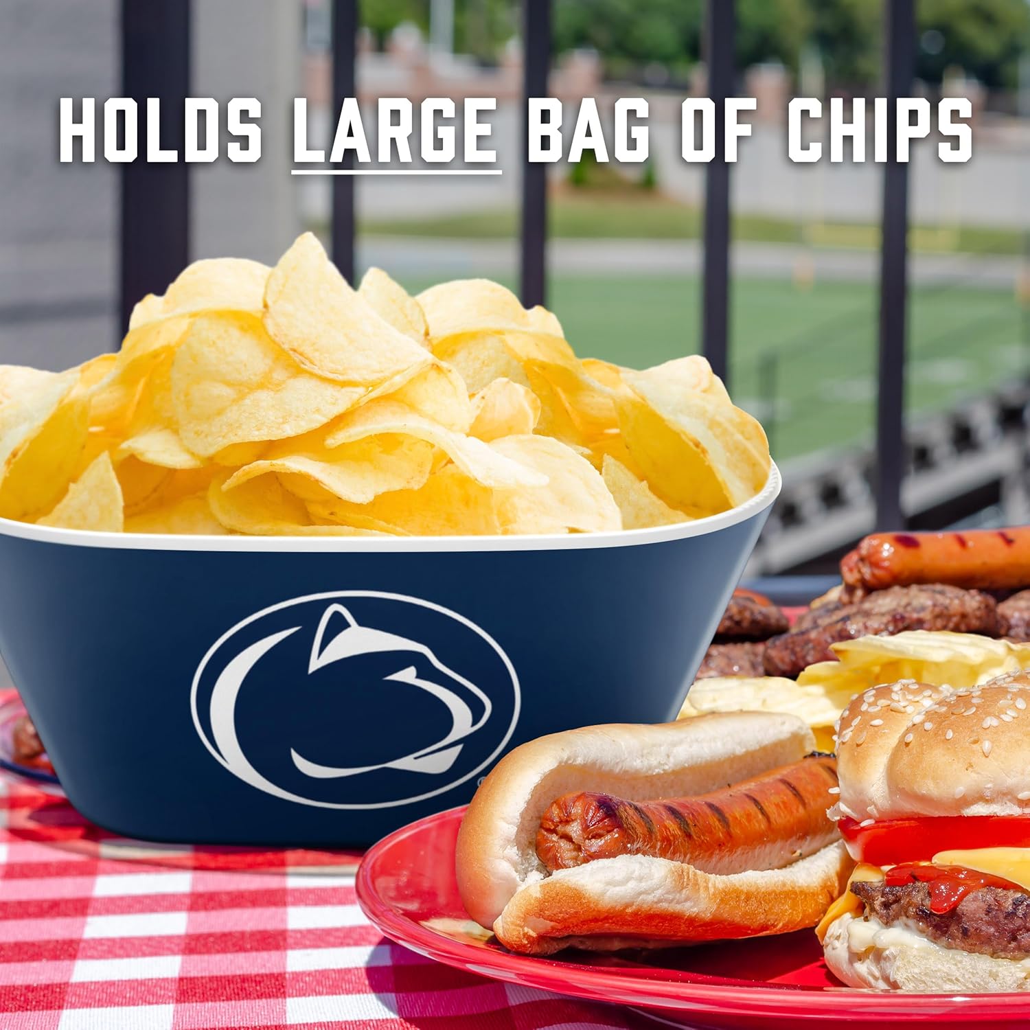 Large size holds a big bag of chips or plenty of snacks
