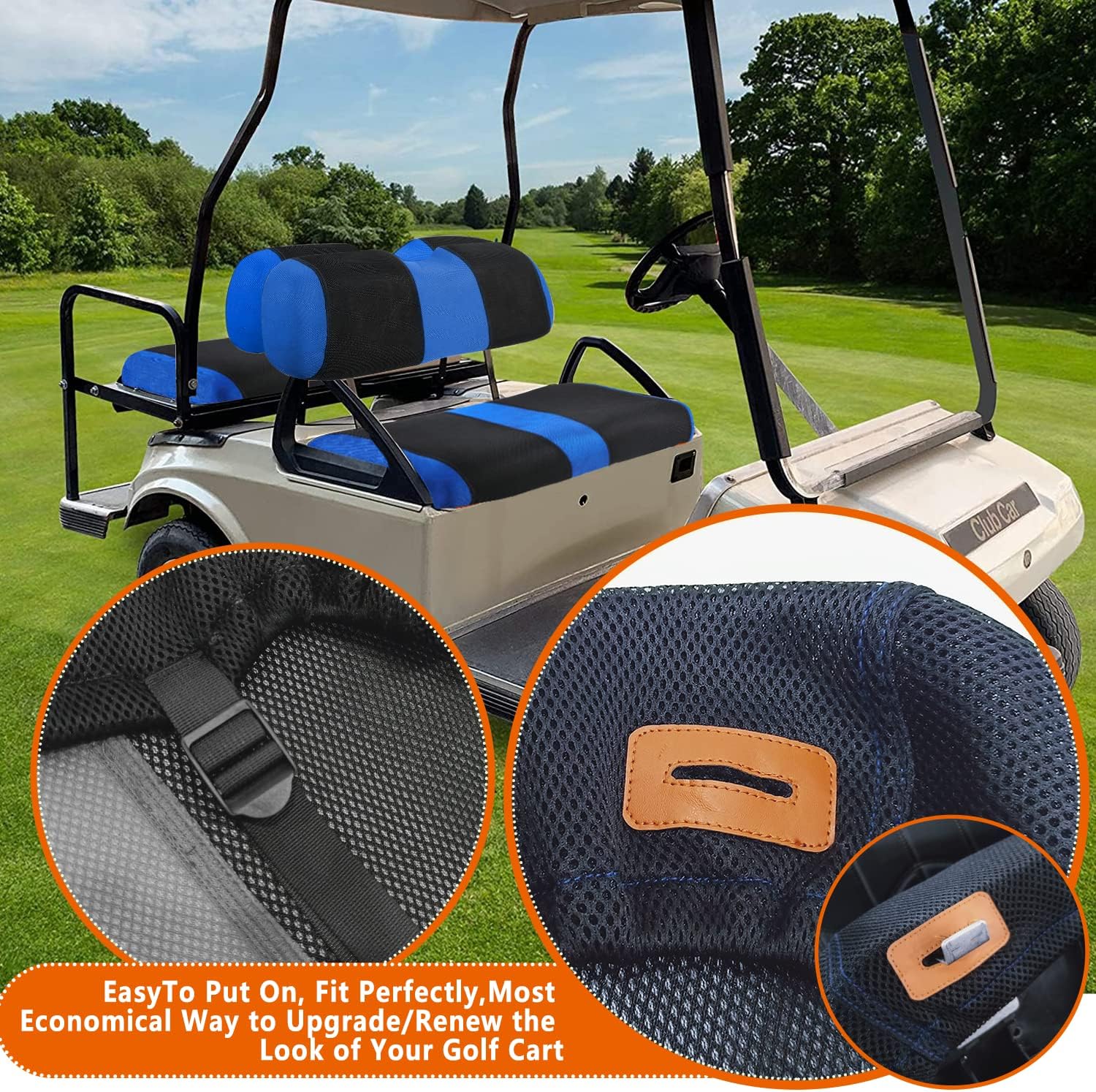 Refreshes Your Cart’s Look: Upgrade your golf cart’s appearance instantly! These covers conceal minor damage and wear, giving your seats a fresh, like-new look that rivals pricier alternatives.