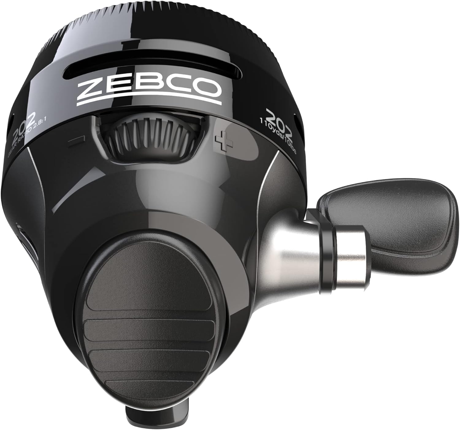 Zebco 202 Spincast Fishing Reel, Size 30 Reel, Right-Hand Retrieve, Durable All-Metal Gears, Stainless Steel Pick-up Pin, Pre-Spooled with 10-Pound Zebco Fishing Line, Black, Clam Packaging